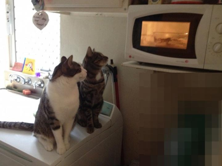 電子レンジに入れると 自分たちの食べ物をマミーが作っているんだと思った ににゃん。