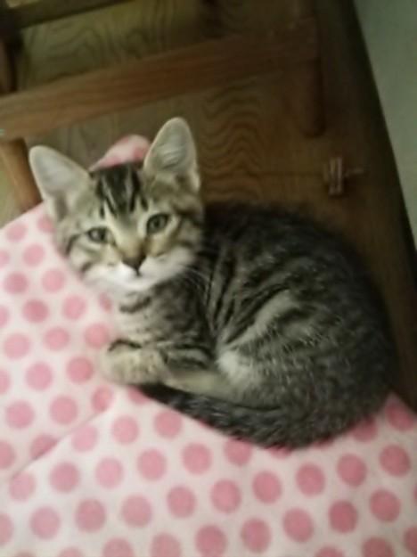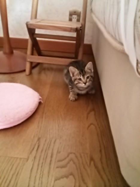 1ヶ月よりは大きいので、普通は捕まえようとすると逃げるのだけど、この子は「やっと迎えが来た。さあ帰ろう」と言わんばかりに、すんなり抱きかかえて帰りました。
