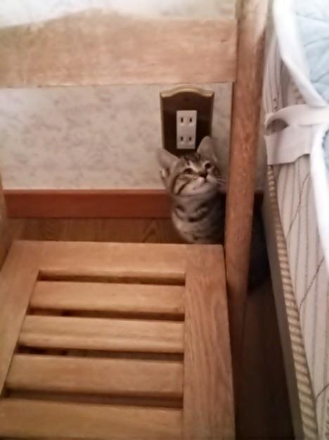 ↓家に来て5日目。小さい椅子がお気に入りで、よく隠れていました(丸見えだったけど)。