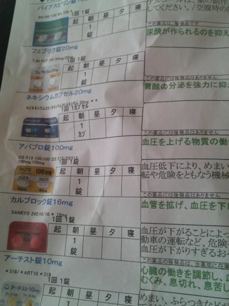 処方された薬が全部で8種類、入院時の血液検査で解る心臓の数値が常人の5倍あり、