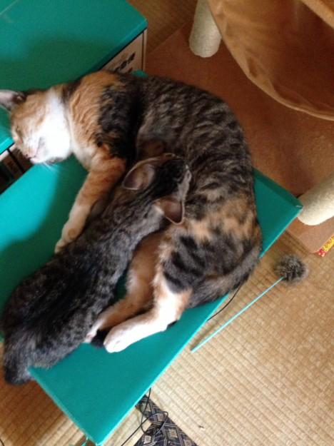 先住のお姉ちゃんのおっぱいに吸い付くムギ。