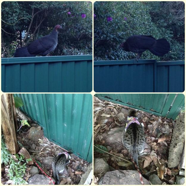 たびたび こちらの庭にもお邪魔する七面鳥さんが お隣さんにお邪魔していました。