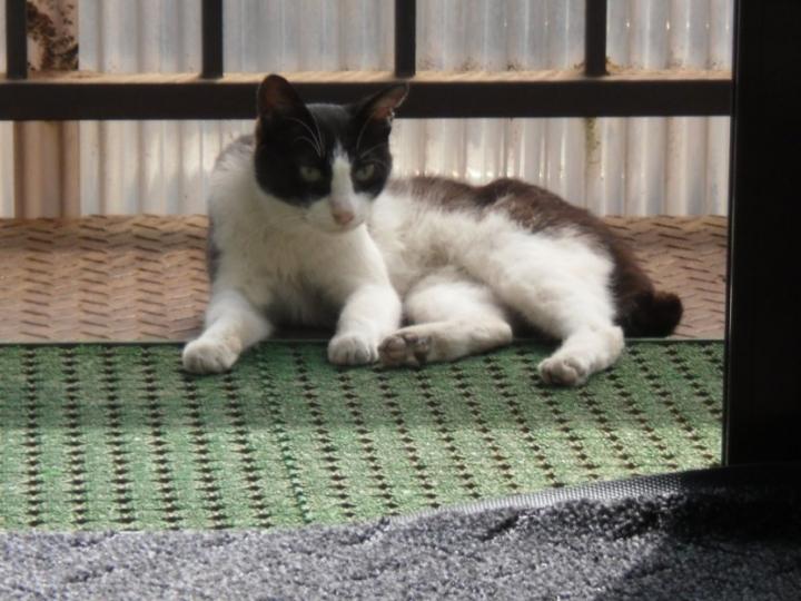 暑いので、最近は階段下の日陰のコンクリートブロック上で休むことが多いです。