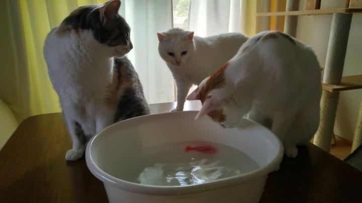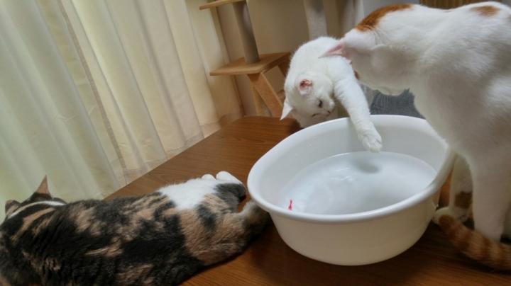 水を入れている途中で遊び出したナナ、