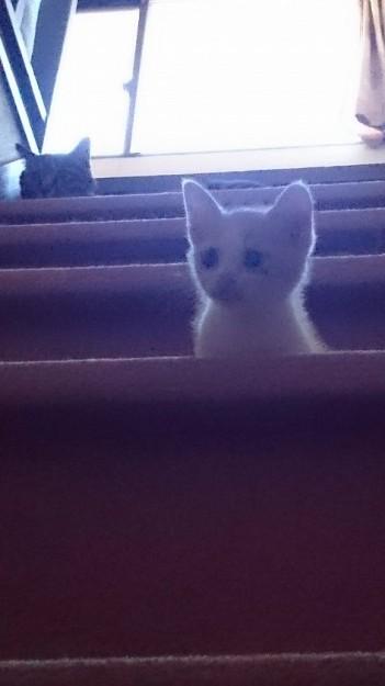 そしてしおちゃんは2階で寝ているくうちゃんをみに初めての階段を体験