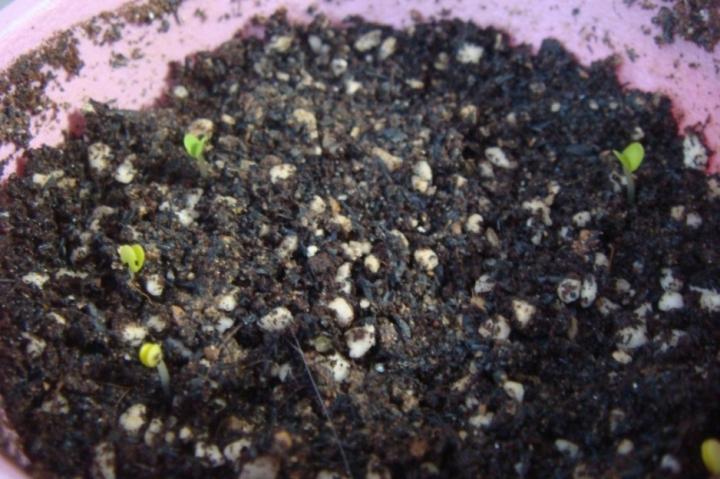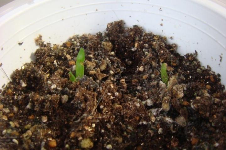 全然出てこないのと、枯れたのも除いて、生き残った二つの芽。