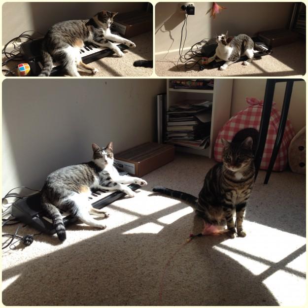 Rupiさん、床に置いてあるキーボードに寝ています・・・