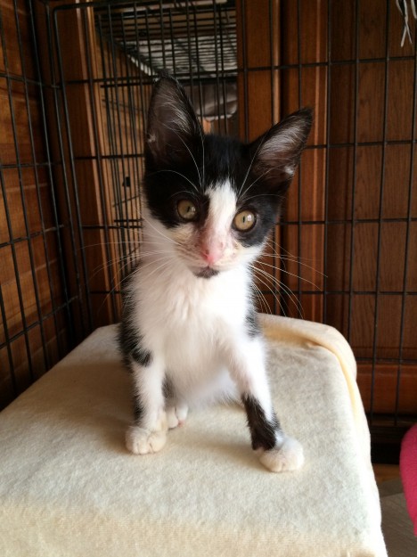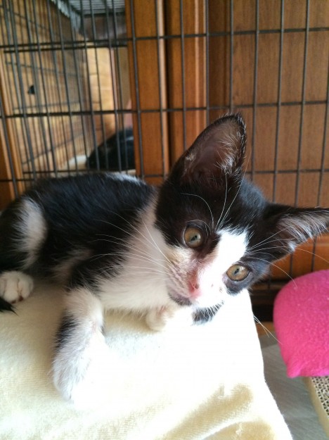 まだ鼻水は出るものの、すっかり元気になっている子猫。