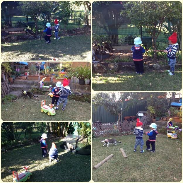 さて、Euron君、今日もテントを安全地帯にしながらの外遊び。