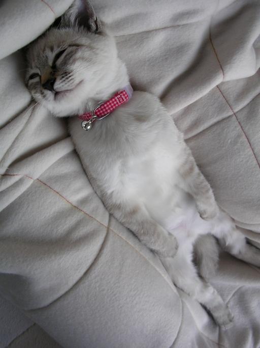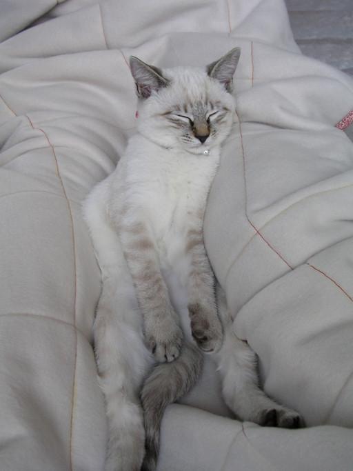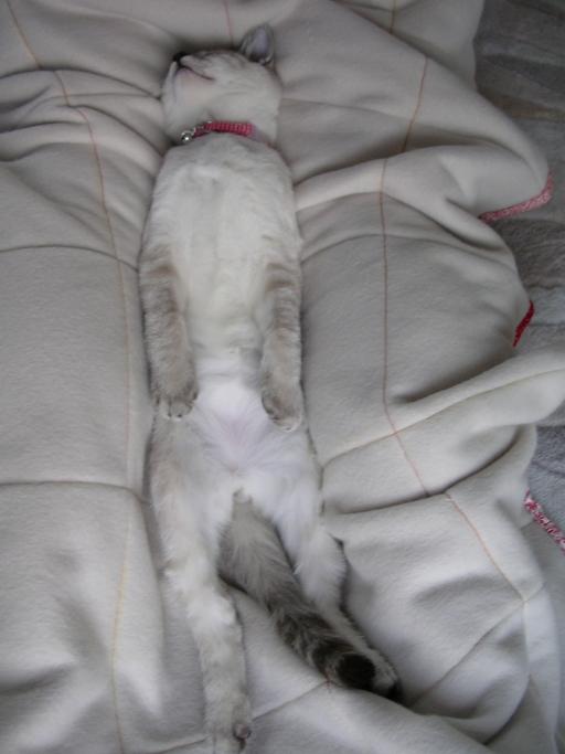 昔この国の新妻たちは寝相にまで気を使っていたと聞きます。貴方は我が家の新猫です。心得て置くように・・・・