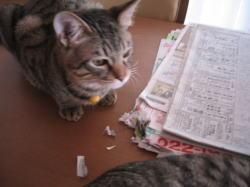 破くのは広告だけにして、お願いだから今日の新聞は、破かないでね。(片付ければ、いいだけなんですが・・・)