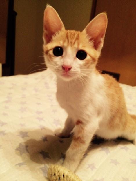 この仔は保護したときから体も小さく、お腹の虫のせいだったのか成長が遅い仔でしたが、最近は少し大きくなり、ますます元気に過ごしてます。