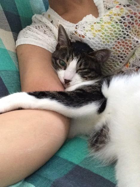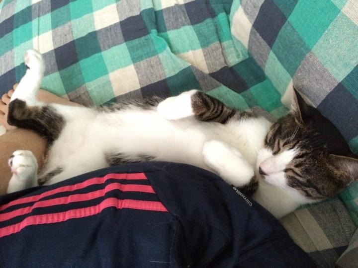 引っ掻きつかれたのかひっくり返って