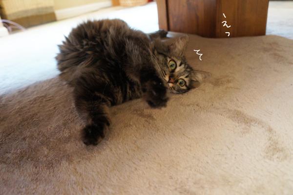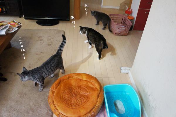 テーブルの下に住んでるナンさんにも積極的にご挨拶