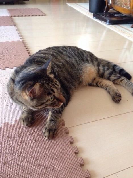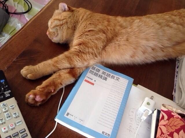 次男が勉強してると、プリントの上にゴロンとする方。
