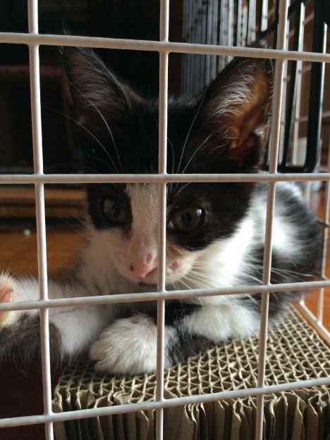 子猫保護時も、ケージだけでは手狭だったのでこの柵で拡張しましたが、すぐに力づくで突破されました…。ちなみに目の下の傷は柵に顔をグリグリ押し付け過ぎてできてしまった物です。でも、新陳代謝が良い子猫、すぐ治りました。
