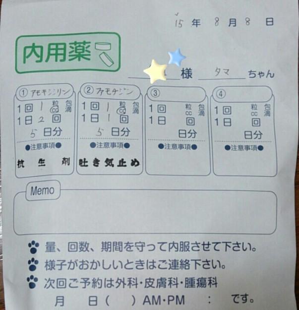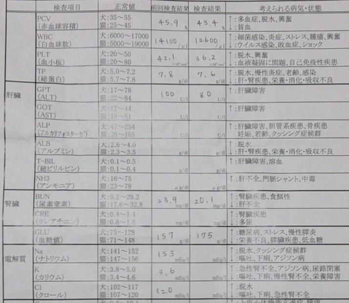 血液検査、エコー、静脈点滴……諸々で諭吉様二枚(@▽@)