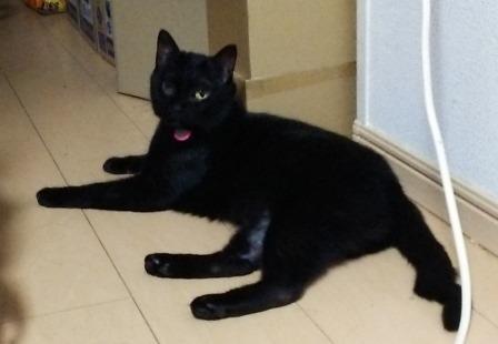 エアコンつけたら、膝でお寛ぎですが、エアコンつけてない時間は、廊下で涼んでらっしゃいました。