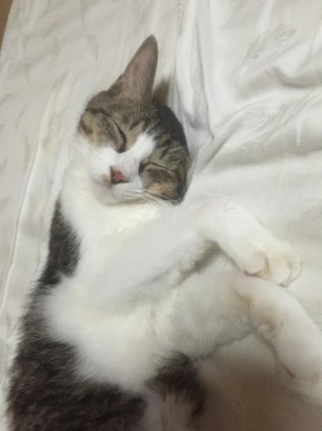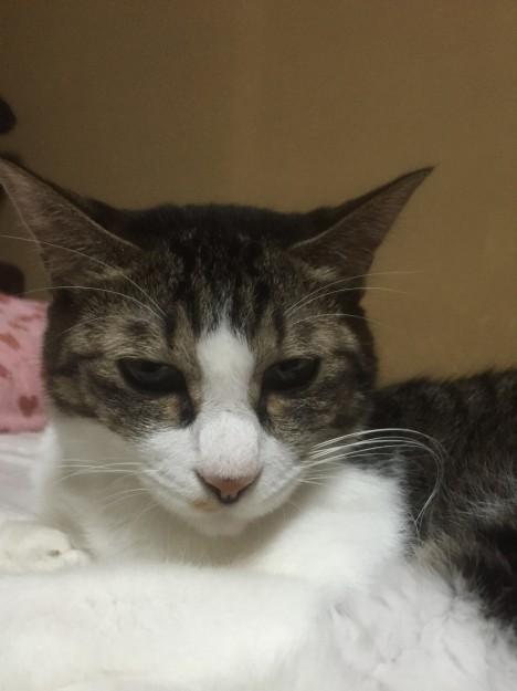 眠いのを邪魔したら目つきが怖い・・・