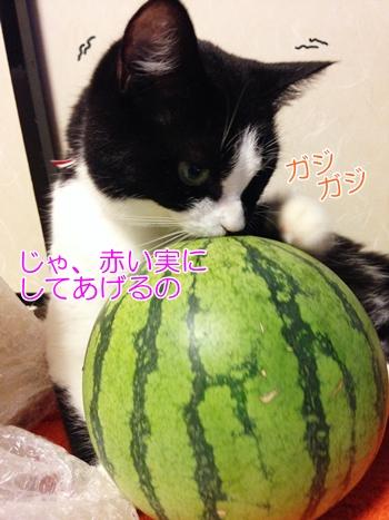 興味がありそうなので、ムスビさんにスイカを見せてみると…?