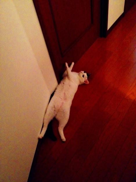 朝起きたらもうサウナ部屋の前でくつろいでました