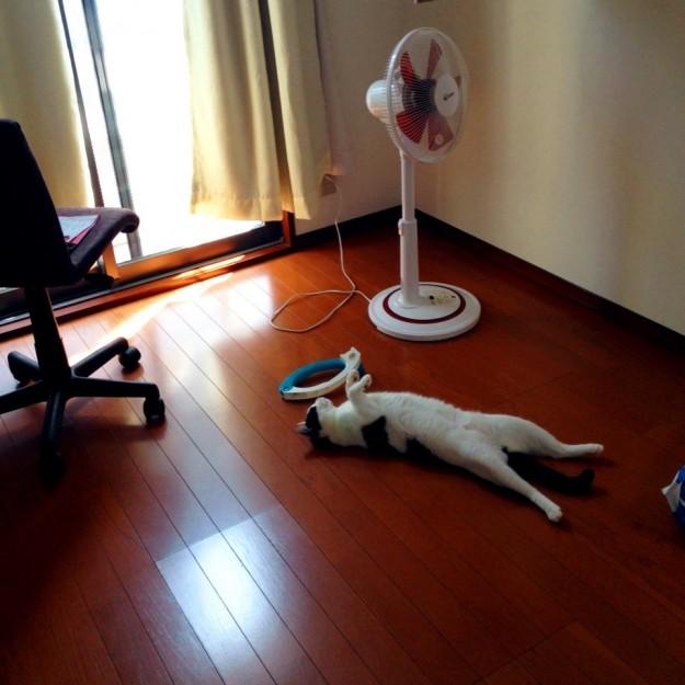 こちらは洗濯を干すだけで汗だくだってのに。。