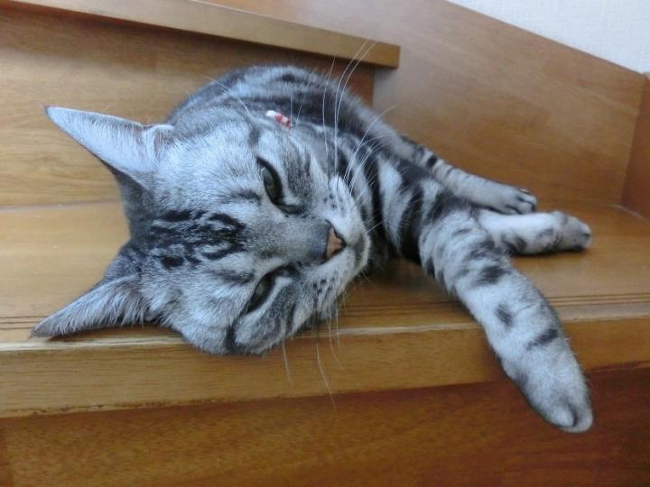 先ずココさんです。毎年この季節恒例の階段寝?ここが一番気持ちいいようです。