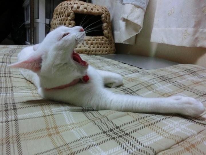 リンは母さんのベッドを占領!「ふぁ~~っ!だるくて眠いにゃ~」