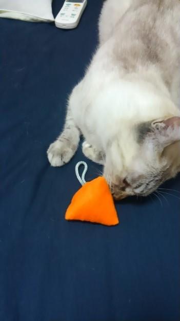 音が好きなので鈴を入れ、粉末のマタタビを少量