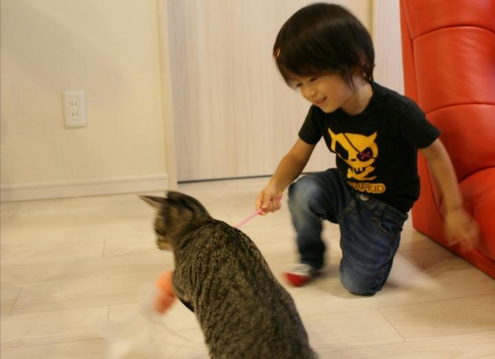 姪っ子と甥っ子がにゃんずと遊ぶために、オモチャまで作ってきてくれました(*^^*)