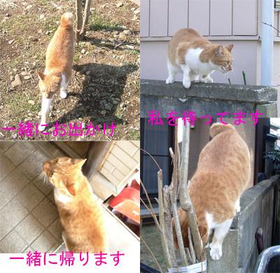 私が、買い物など用事があって出かけると一緒に付いて来て待っている事です。ほんの数10メートル付いて来て、帰ってくる私を待って居ます。帰ってくる私を見つけつと慌てて駆け寄ってきて一緒に帰る可愛い子です。
