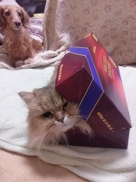 御中元用に頂いたソーセージ類が入っていた箱がすっかりお気に入りのクルミです。