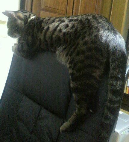 主人の椅子の背もたれの上が定位置。