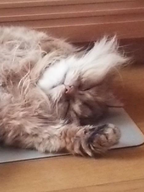 グチャグチャの寝癖でおネンネのむーちゃん
