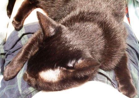 ↓こんな格好で膝にベッタリ。