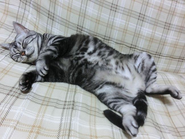 思わずチョークで線引きたくなりました。なんて格好で寝てるんだ?