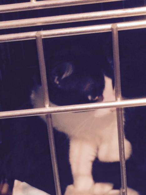 小さなケージに二匹のハチワレ。兄妹なのだそうです。