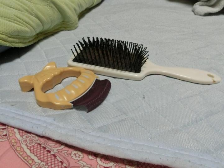 人間用のくしの柔らかめの(ベル専用です)と、毛もなかなか取れるピ○コーム。