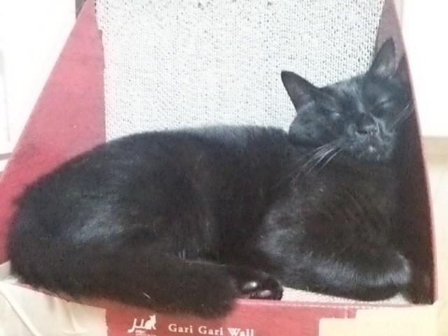 昨晩は古い方の爪とぎで、らんちゃんがスヤスヤZzzz