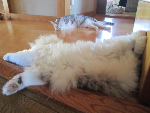 一方ほたるですが、年の離れたお姉ちゃん風、毛繕いとかしてあげてるけど仔猫の時ほど熱心じゃ無くなったみたいです。