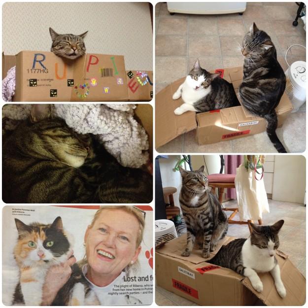(右2枚)Amicusさん用に買ったキャリーが入っていた箱で 御舟ごっこ、みたいな?