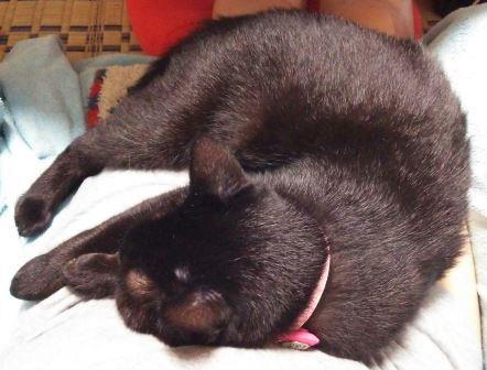 私の膝に乗らなきゃ死ぬのかって勢いで膝にベッタリ。