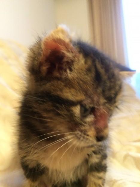 炎症の部分が予想以上に大きく、右耳や鼻の頭の毛がまるごとなくなってしまった。