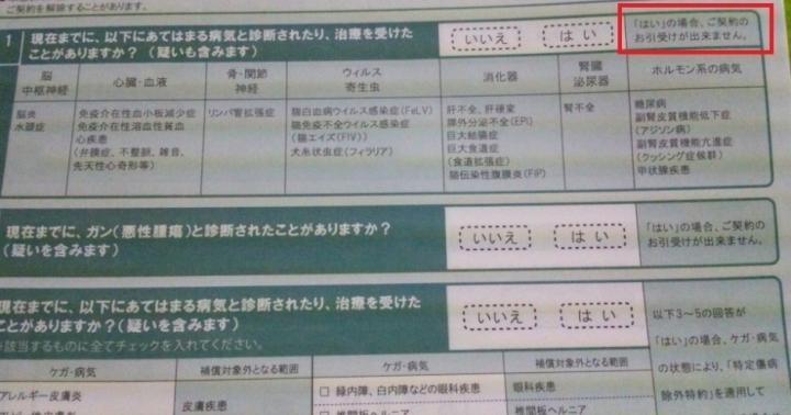 それなら、告知書に『はいの場合は加入できません』と書いておいて欲しい(-_-;)