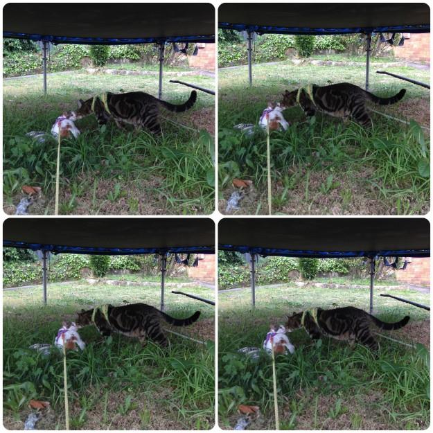 脇の網戸の隙間から出るときに オケツが引っ掛かって 網戸がガタン!と・・・