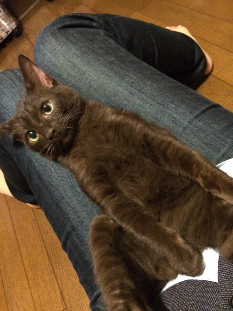 大乱闘になるかとおもいきや、完全に膝の上でくつろぎモードです(笑)