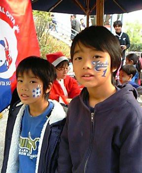 フェイスペインティングでにわかサポーターに。