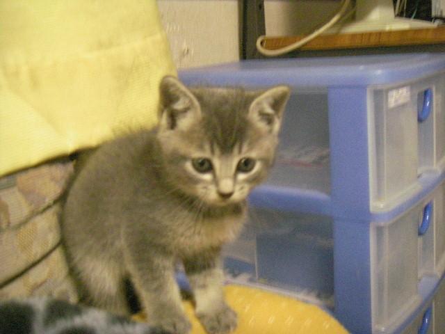 知人の話では野良猫赤ちゃんかな?と言っていたのですがとても人懐っこいので飼い猫の子供で、捨てられたと思います。近所にグレイの猫ちゃんは居ないみたいです。他にも兄弟が居るかもしれないので、探して見てねと離して置きました。