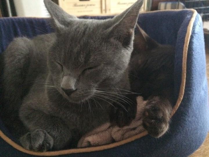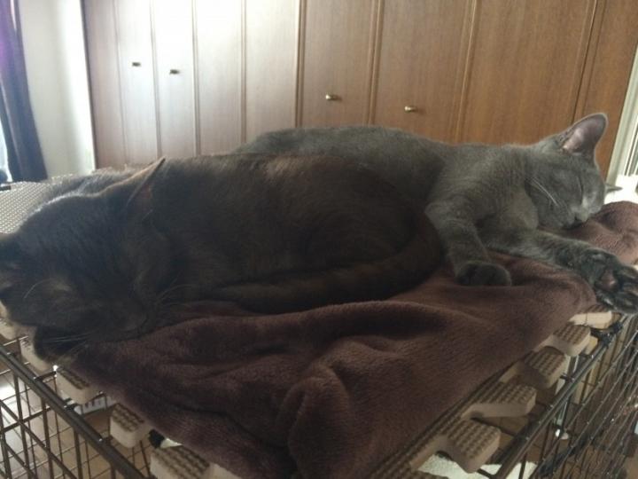 また飼い主のところで2匹は爆睡中です・・・・・。