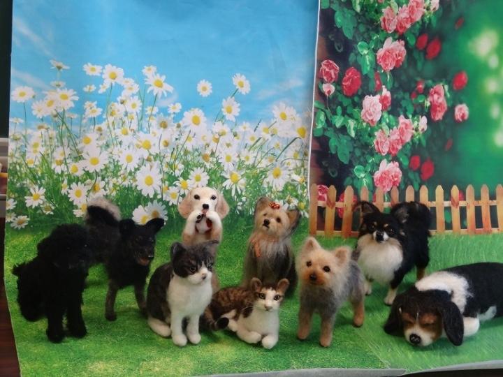 で、今日は皆さんの作品もたくさん出来上がったので犬に囲まれてみました。
